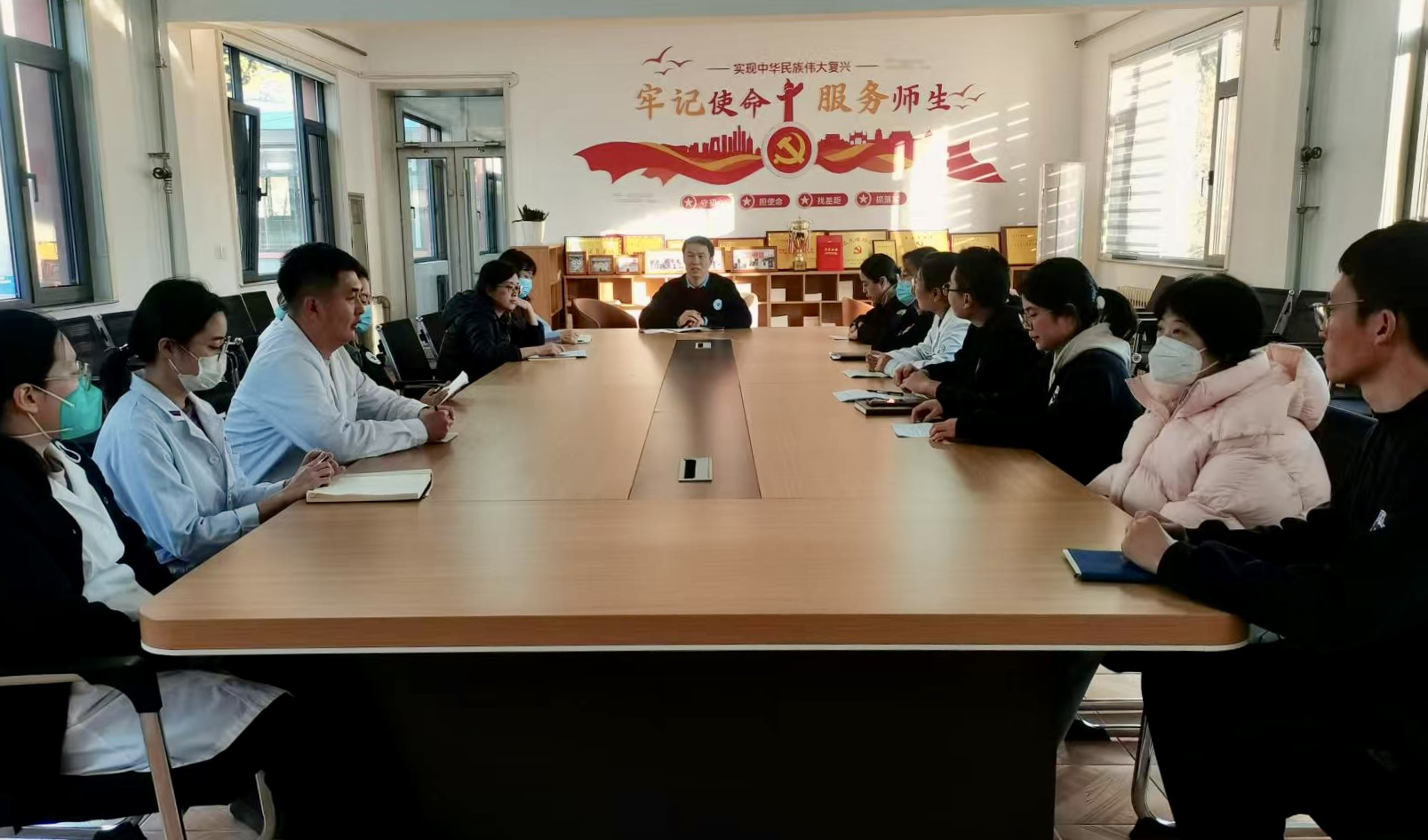 传承培养初心,筑牢健康防线。2025年,按照学校此前对校医院师生医疗保障服务能力建设和全科医师培养工作的部署,校医院选派了主治医师孙韬、住院医师于晓倩作为第三批医护人员赴烟台市烟台山医院参加烟台市全科医师转岗培训。为及时总结全科医师培养工作经验,接续规划下一步的培养计划,12月24日下午,校医院召开了第三次全院全科医师培养工作推进会。会议由院长王慧主持,副院长史历、王玉玲,医保办主任陈红瑜,门诊及相关医技科室青年医师共计13人参加会议。