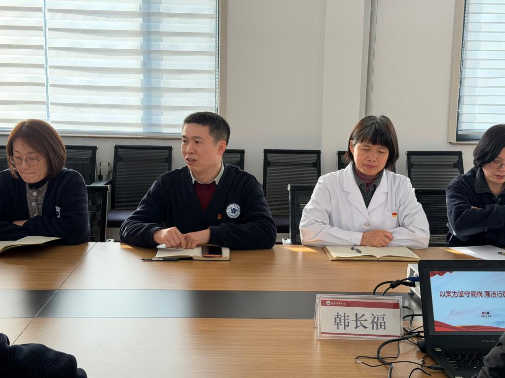 为不断加强党支部和全院党风廉政建设,强化党员干部和医护人员廉洁自律意识,筑牢拒腐防变思想根基,1月27日上午,校医院党支部在二楼会议室组织开展2026年首次主题党日活动,活动特别邀请学校纪委副书记韩长福讲授廉政党课,支部全体党员、入党积极分子,校医院班子成员参加活动。