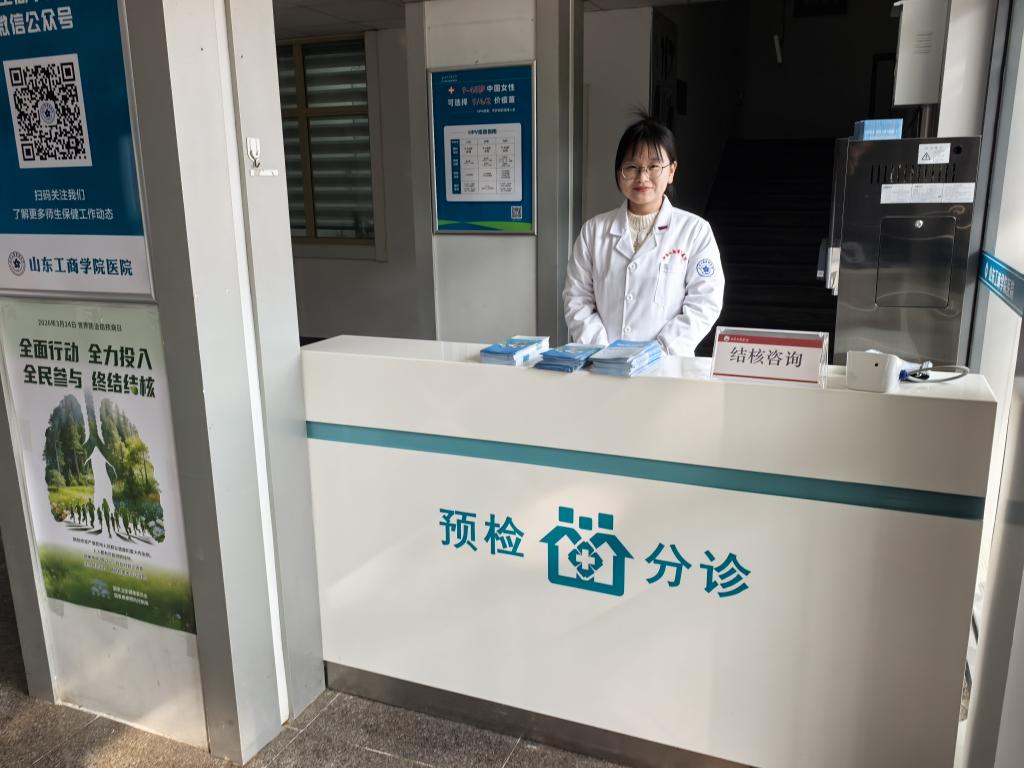 校医院持续构建线上+线下全方位宣传格局:校医院在分诊台设置结核定点宣传点位,防疫科张金铭老师现场为师生解答结核病、结核疫苗相关疑问,提供免费血压测量服务,发放结核病防治宣传手册与科普资料,把健康服务精准送到师生身边。