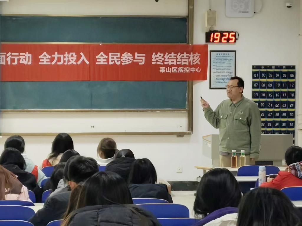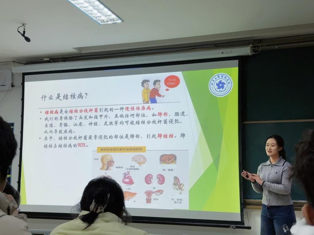 校医院将结核防治知识融入大学生公共选修课,于晓倩、栾钰两位老师结合校园案例,系统讲解结核病传播途径、典型症状、规范治疗与科学防护,推动防治知识常态化科普渗透。